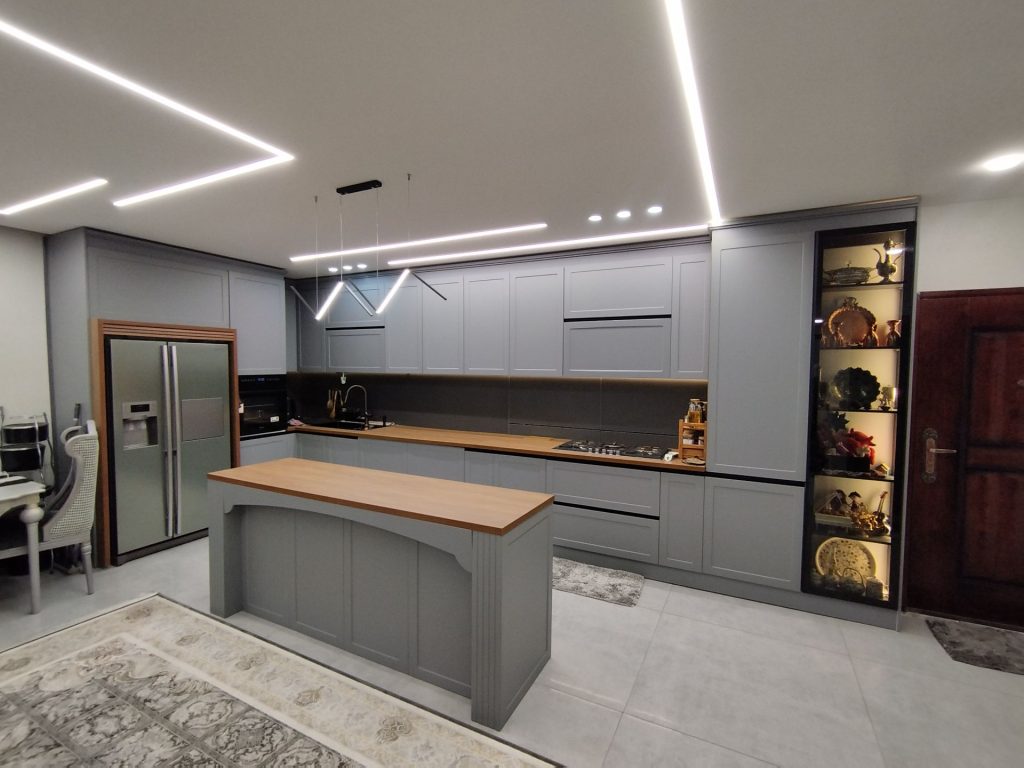 • کابینت مدرن با جزیره: کابینت با جزیره یکی از پرطرفدارترین مدل‌های کابینت مدرن در سال 2024 است. جزیره آشپزخانه فضای مفیدی برای پخت و پز، صرف غذا و گردهمایی خانوادگی فراهم می‌کند.