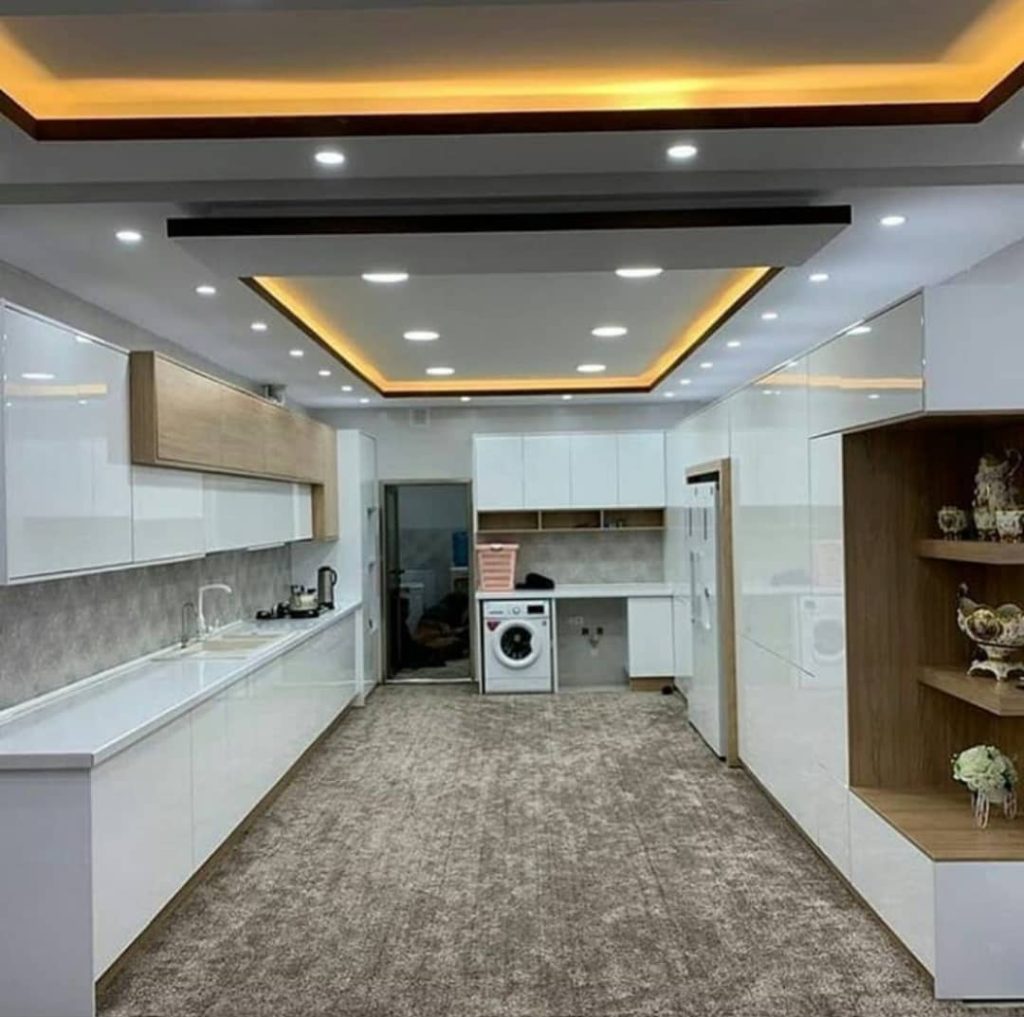 • استفاده از فضای عمودی: در آشپزخانه‌های کوچک، استفاده از فضای عمودی بسیار مهم است. کابینت‌های بلند و قفسه‌های دیواری می‌توانند به شما در استفاده بهینه از فضا کمک کنند.