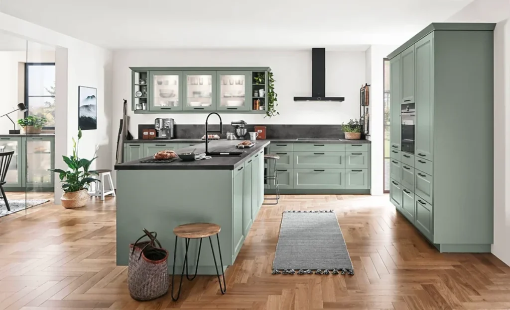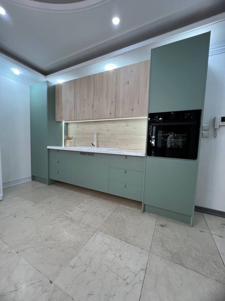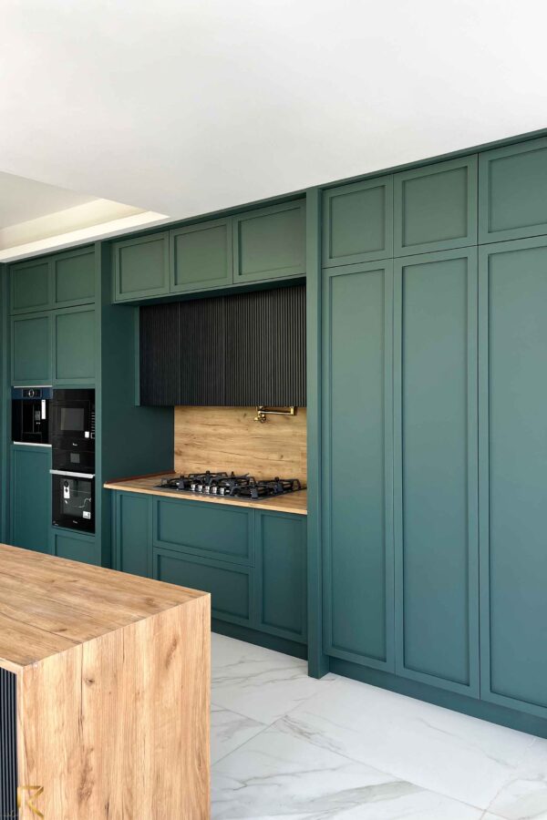 کابینت مدرن سبز انتخابی جسورانه و منحصربه‌فرد برای آشپزخانه‌های مدرن است. رنگ سبز به فضای آشپزخانه حس طراوت و زندگی می‌بخشد. کابینت سبز را می‌توان با رنگ‌های خنثی مانند سفید، طوسی و مشکی ترکیب کرد و ظاهری متعادل ایجاد کرد.