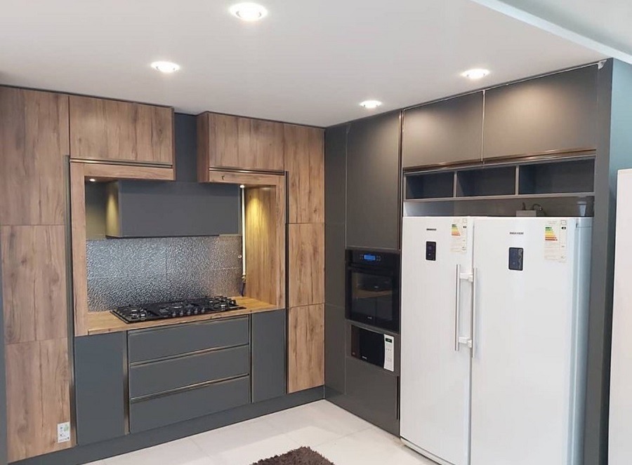 • با ترکیب متریال مختلف: ترکیب متریال مختلف مانند چوب، فلز و شیشه در کابینت مدرن 2024 رواج یافته است. این ترکیب ظاهری منحصربه‌فرد و جذاب به آشپزخانه می‌بخشد.
