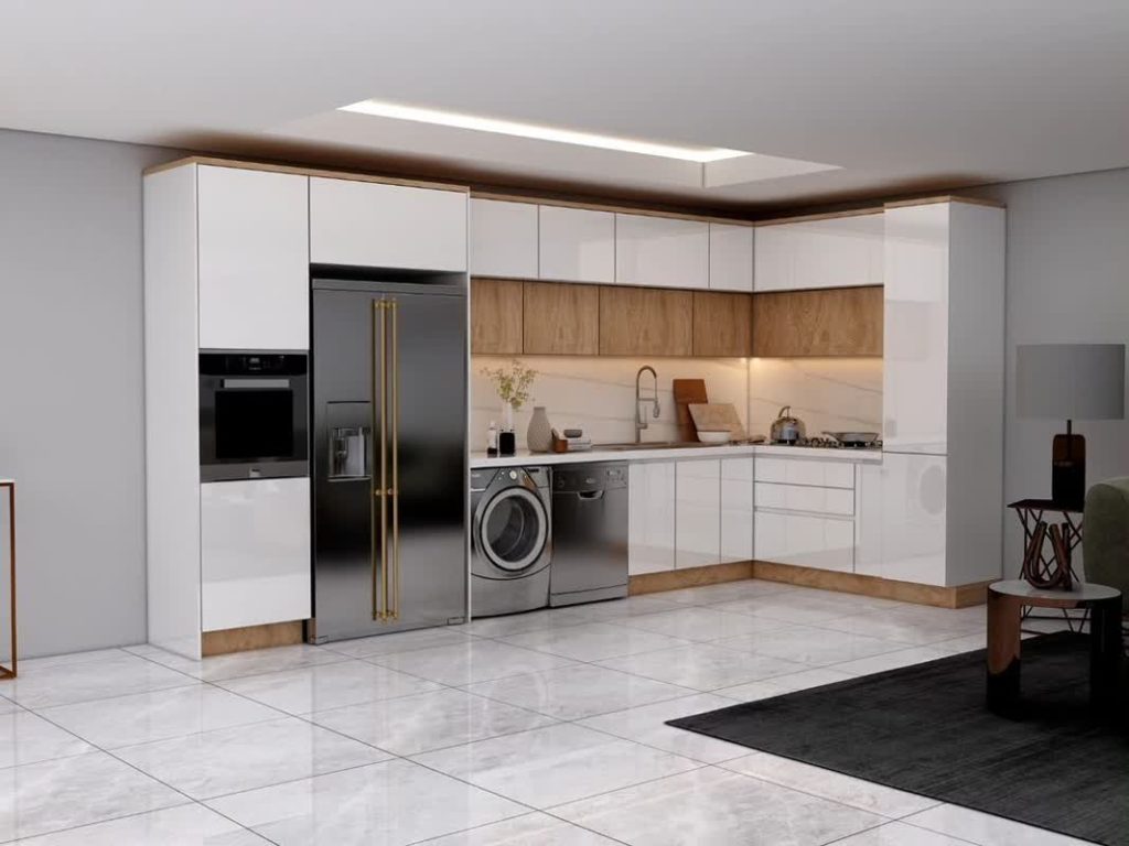 • نظافت آسان: سطوح صاف و براق کابینت به راحتی تمیز می‌شوند و لکه‌ها و کثیفی‌ها را به خود جذب نمی‌کنند.